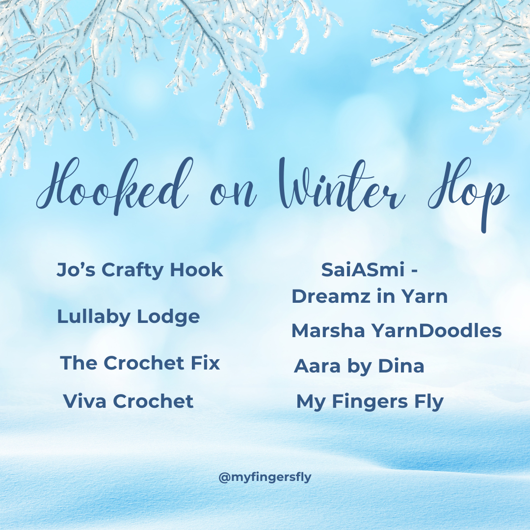 January 3-15, 2026 – Hooked on Winter Hop hosted by My Fingers Fly at the Crochet Designer CommunityGet your new yarn stash ready for and exciting event that is specifically for Warm Winter Wear and Winter Home Decor!