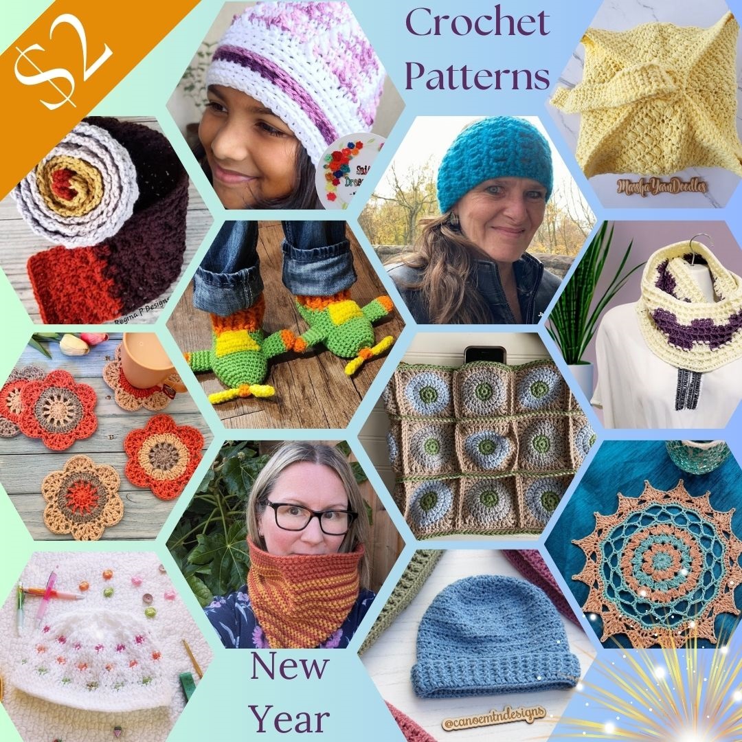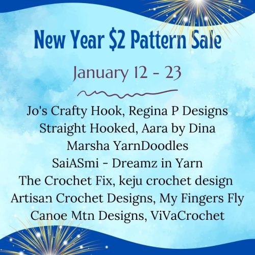 There is NO blog hopping or waiting, you can get each crochet pattern for $2 from January 12-23, 2025!