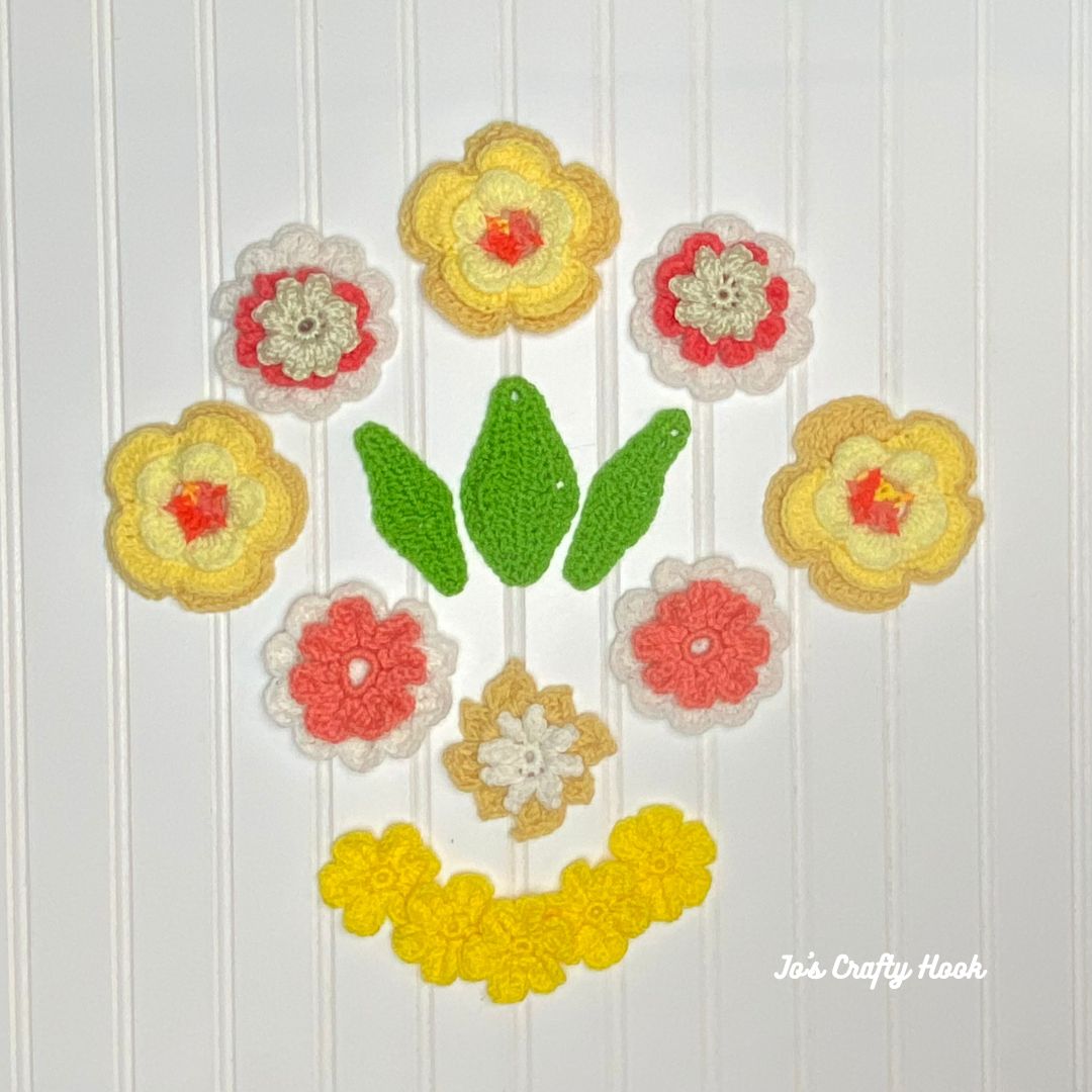 For the next 4 days you will have time to catch up on the pieces needed to make your own Blooming Flowers Wall Hanging. All of the FREE crochet patterns can be found at the links at the top of this post.