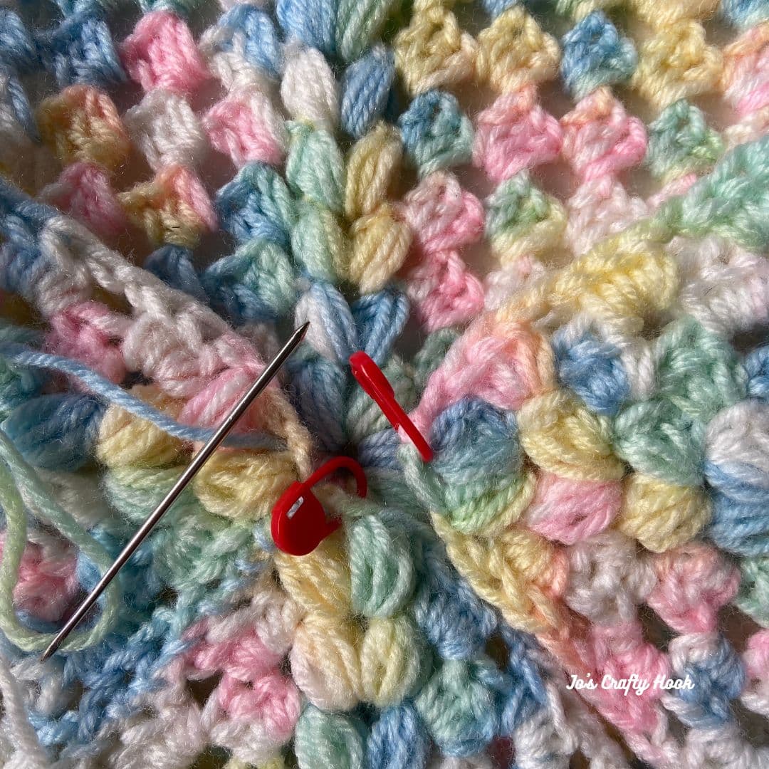Fasten off, leaving a long tail of yarn.