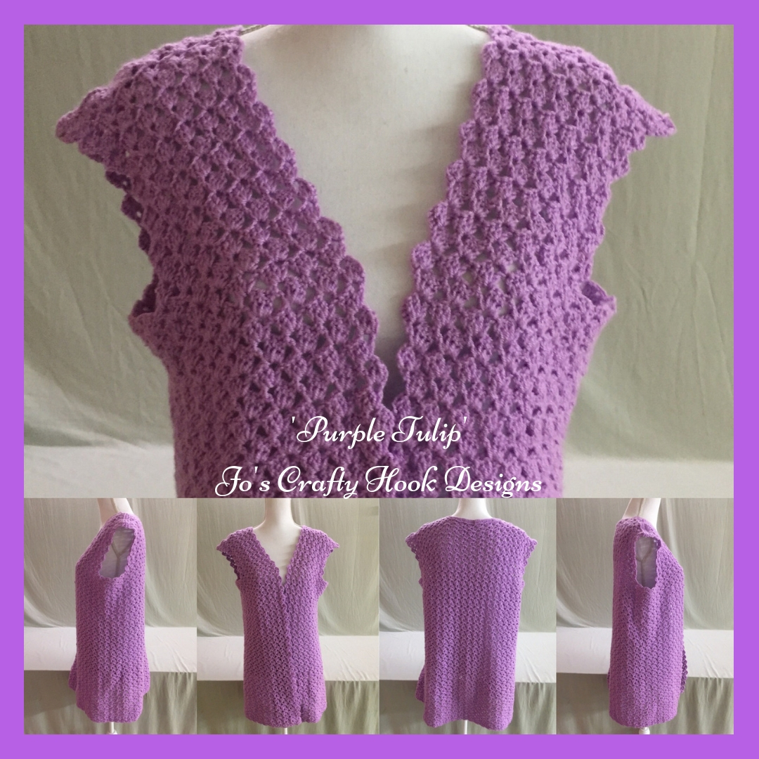 After that I decided to try my hand at designing. I wanted to make a sweater with different yarn. 2 tries later and a lot of trials and errors, the Little Black Vest, the Tulip Sweater Vest and Jo’s Crafty Hook Designs were born! The Little Black Vest is on Sale for $30 at my Etsy Shop. The Tulip Sweater Vest crochet pattern can be found on my website for free or purchase the Ad Free PDF version here from the Ravelry Store.