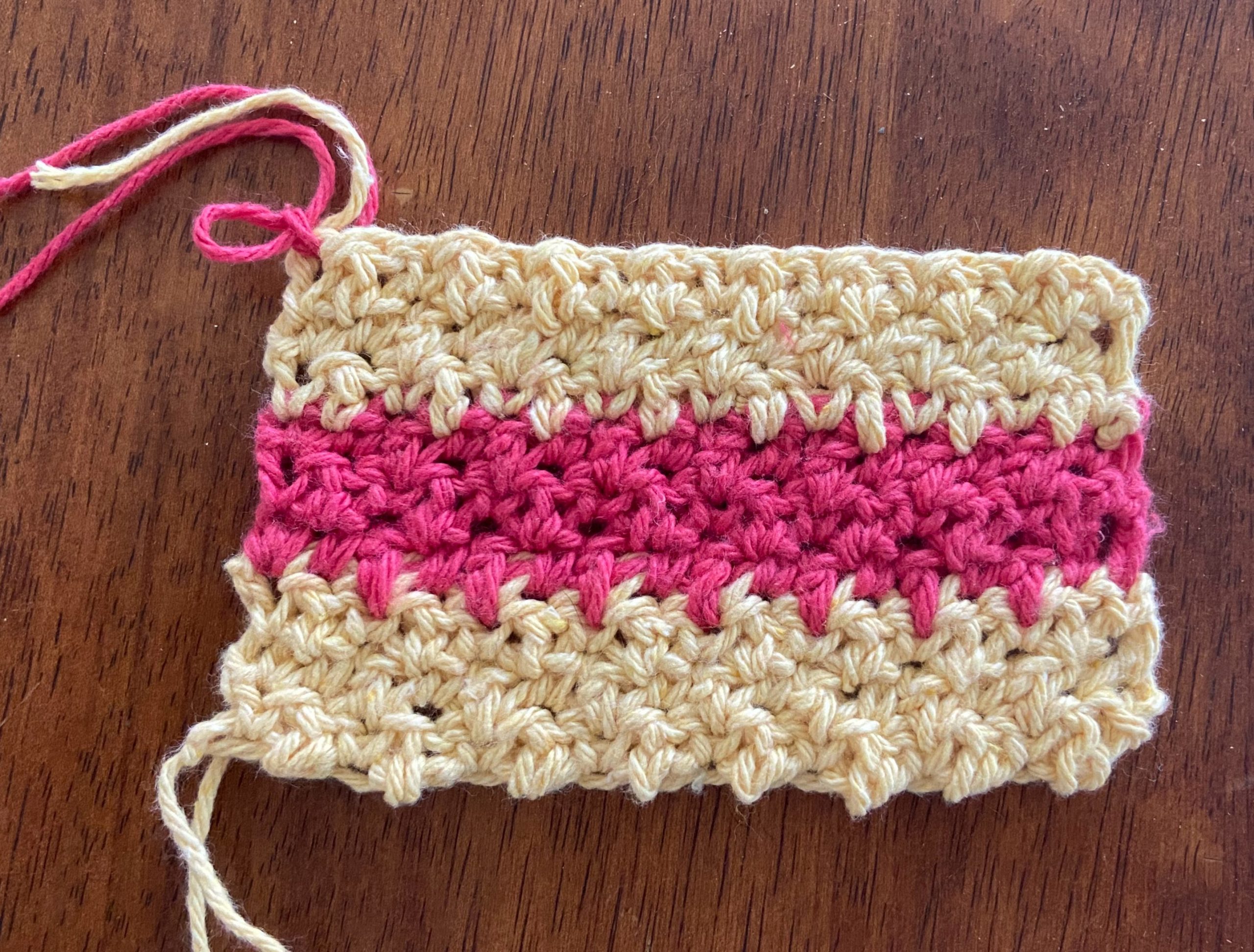 R1: ch 13, sc in 2nd ch from hook, sc across. ch 1, turn. (12 sc)