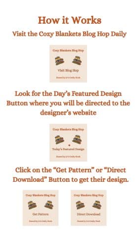 If you can’t wait for a designer’s featured day or you missed their day, you will find their gorgeous cozy blanket crochet patterns for Free or at their stores. Just click on the links provided!