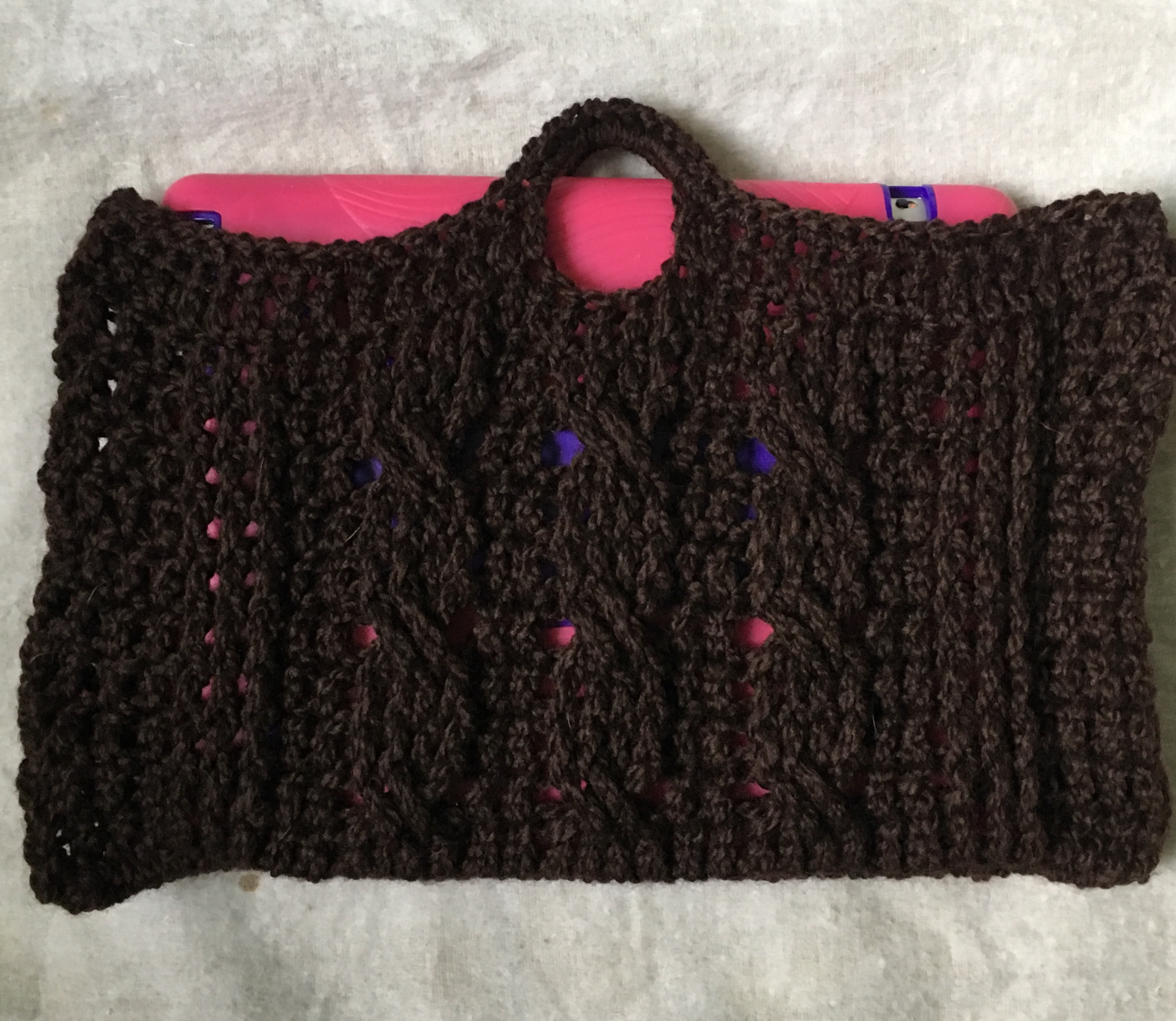 Now that all of that has been said, here is version 1, which is the Large version of the Sharon Bag. I shipped this version to my mom and she says it’s a GREAT fit! If you have never done Braid stitches or Cable stitches, I have a couple of Video Tutorials inside the pattern to help you.