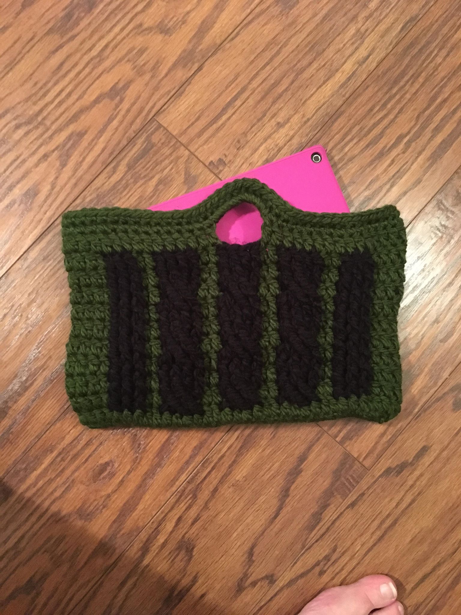 My mom bought a new iPad and wanted something to carry it in to help protect it. My mom asked me to make her something she could carry it around in. Therefore the Sharon Bag was created.