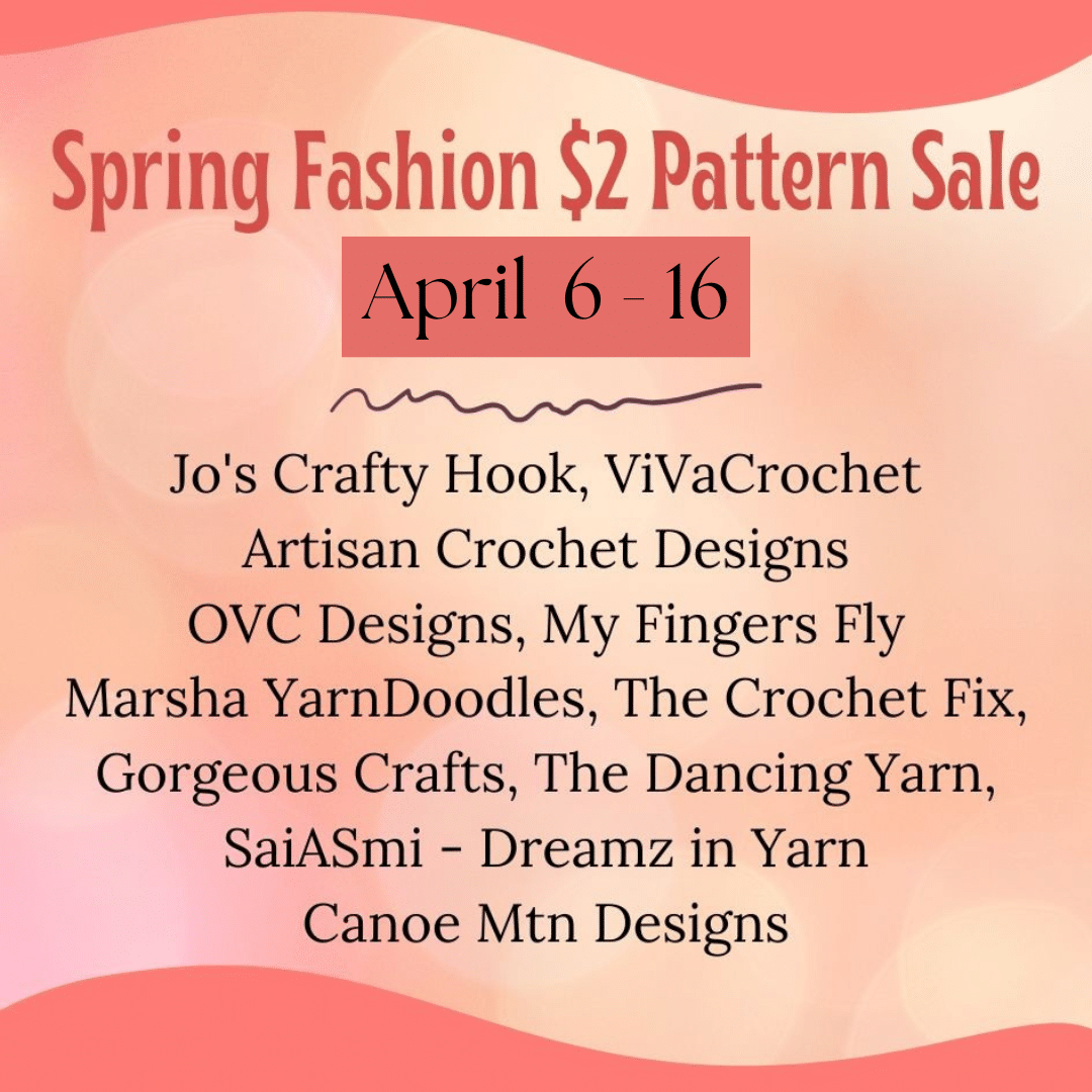 Each crochet pattern will be on sale for $2! during the Spring Fashion $2 Pattern Sale from April 6-16, 2025.