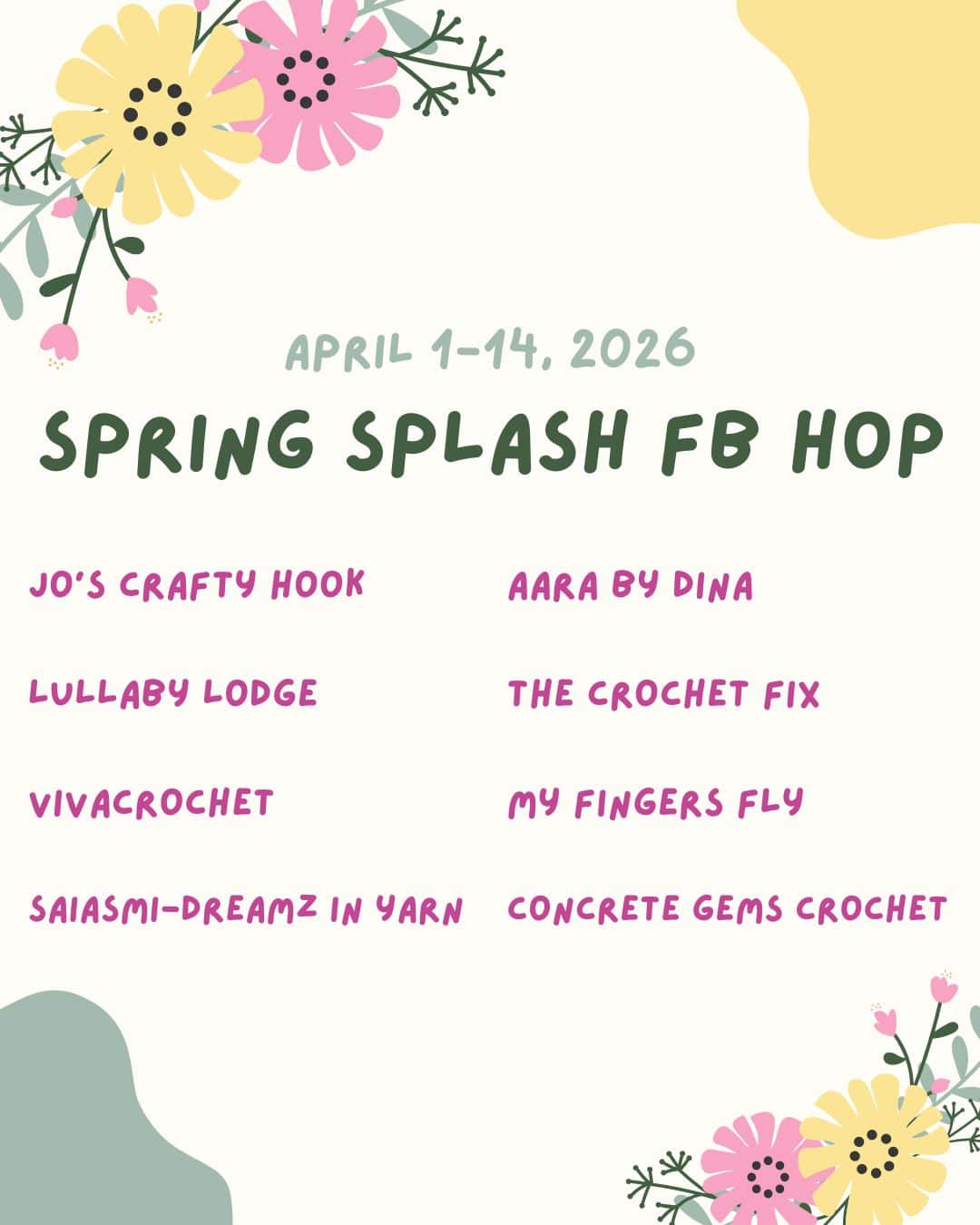 From April 1st – 14th you can get each crochet pattern in the Spring Splash FB Hop at any time for 50% off!