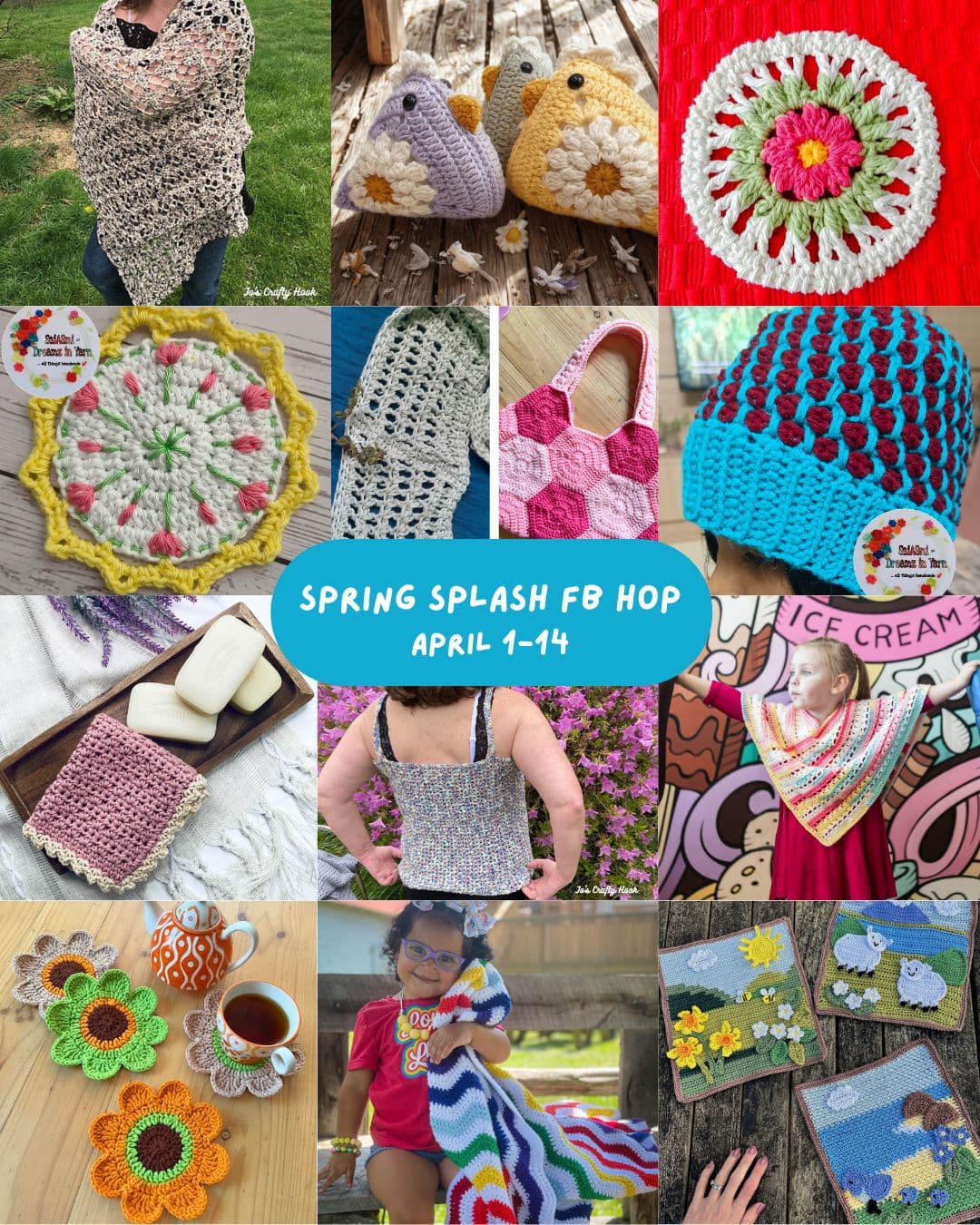 From April 1st – 14th you can get each crochet pattern in the Spring Splash FB Hop at any time for 50% off!
