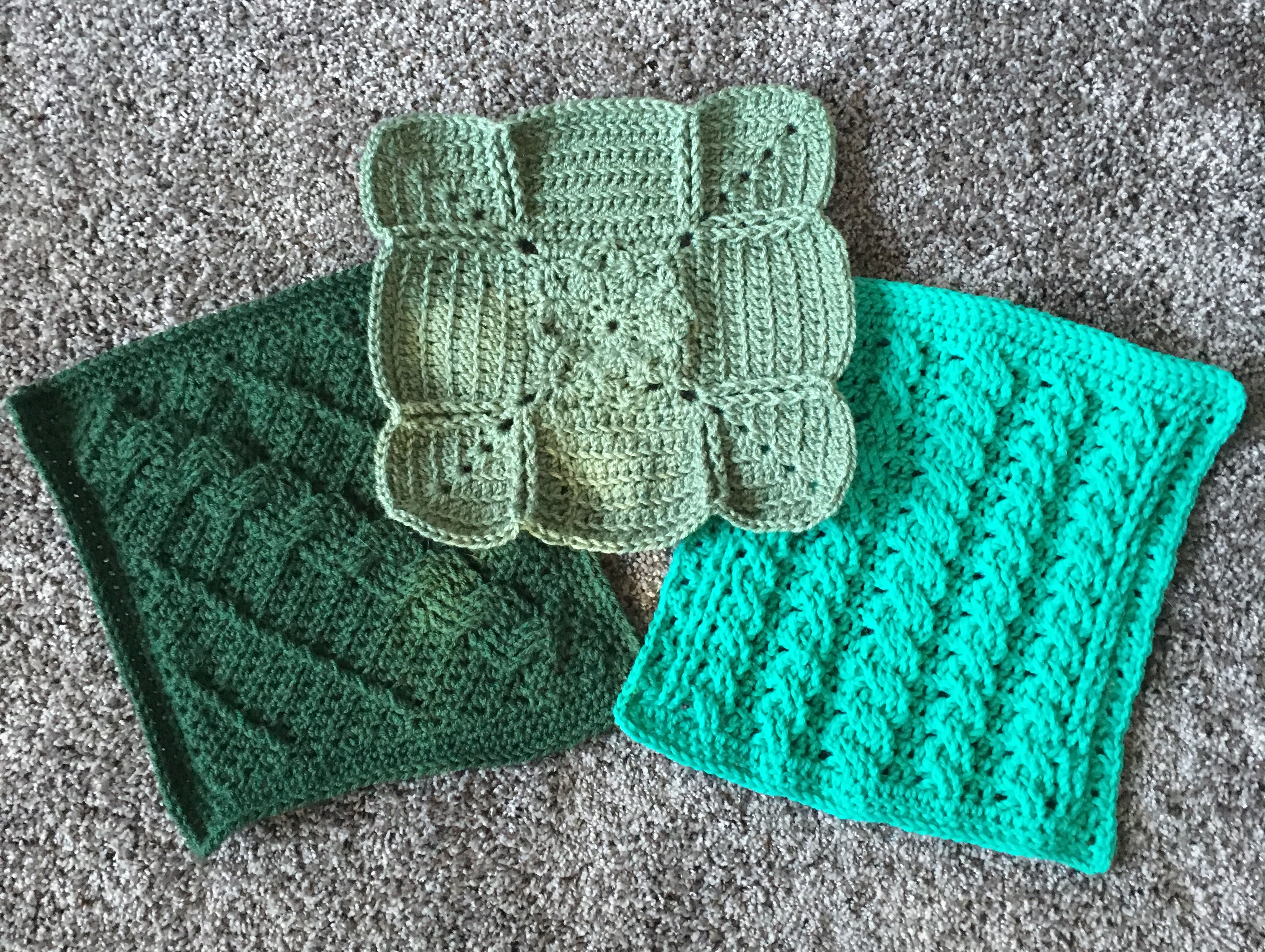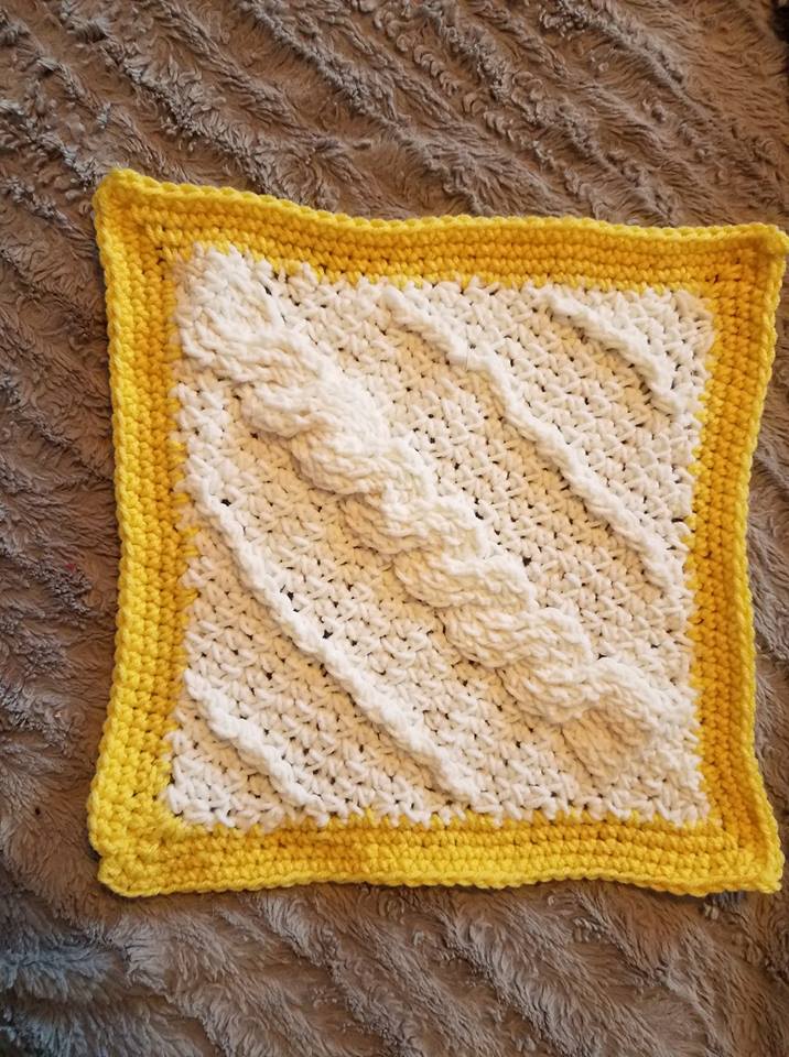 The purpose of the group’s 12 squares is to create an amazing work of art by joining the 12 squares and creating an Afghan. The creation of the Afghan has you joining 3 Squares across by 4 Squares long. You can arrange your 12 squares any way you prefer or join them in the order of the CAL.