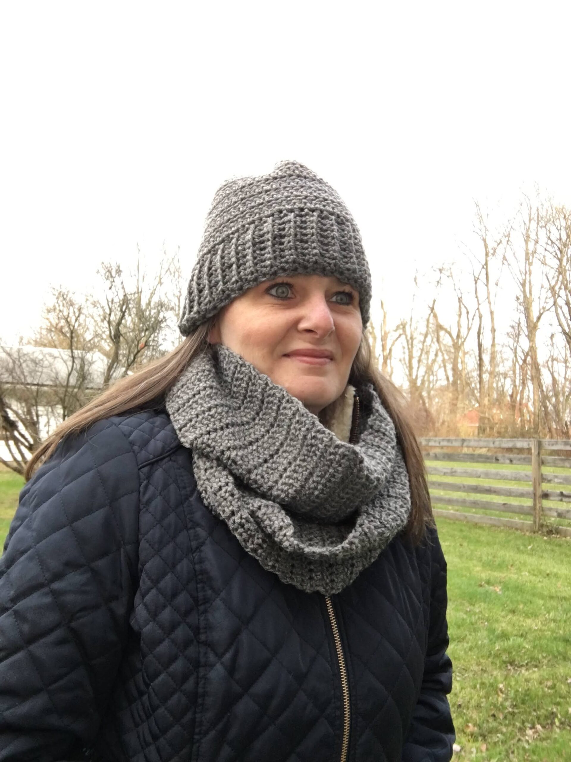 As I stated above, the Herringbone Beanie and Cowl Set Crochet Pattern is a Unisex crochet pattern. My husband and I modeled the set, so as you can see it fits men and women. You will find some wonderful versions from my testers of the set at the bottom of this post.