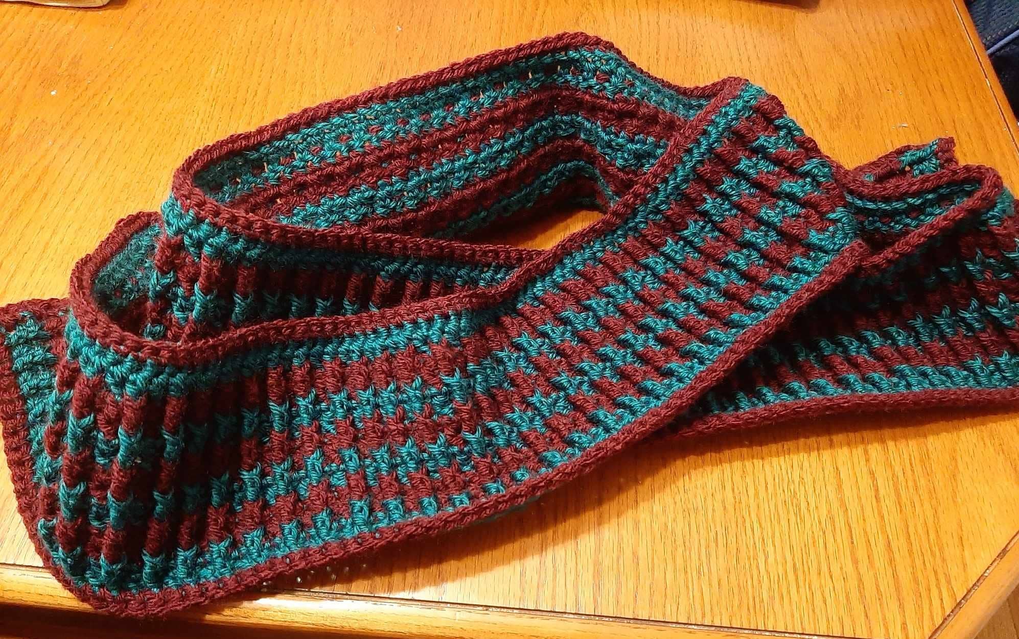 If you would like to use more than one color of yarn, change colors every 4 rows and be sure it is the same thickness so it doesn’t bunch or create gaps.