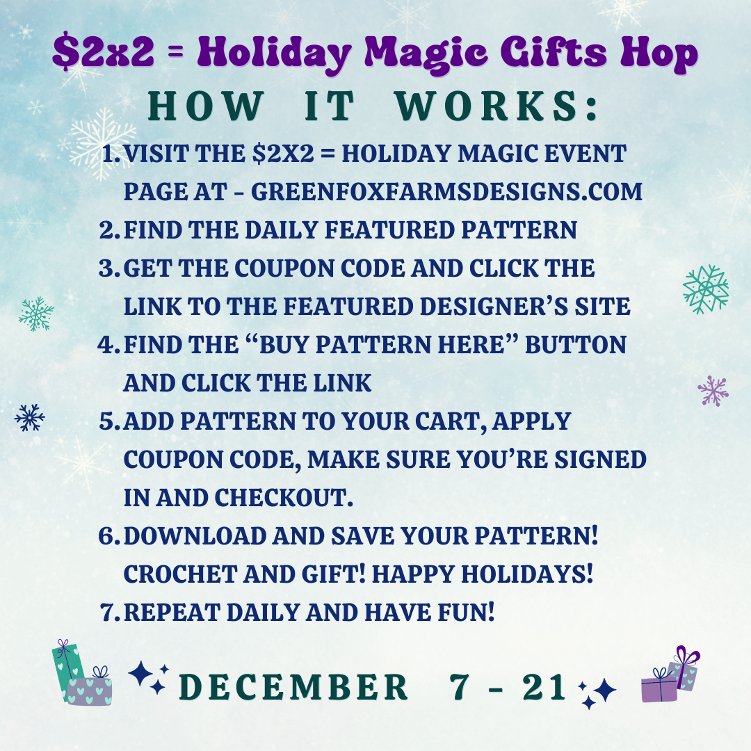 Each day you will find FREE crochet patterns for Bunnies, Lambs, Eggs, Baskets and MORE.