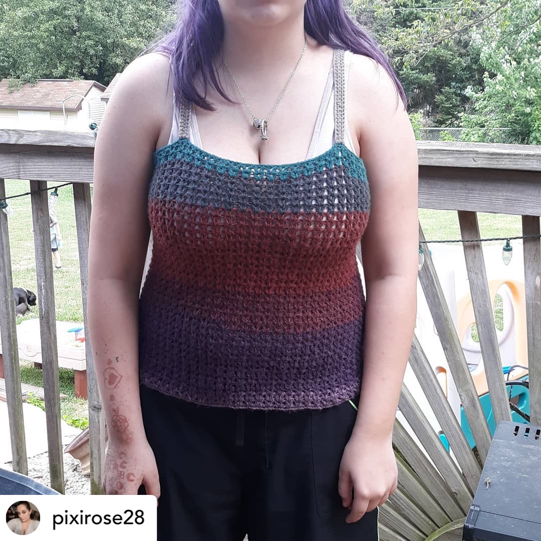 The Vee Cami is one of my newest released crochet patterns.  There are 9 sizes to choose from.  Sizes consist of XSmall up to 5XLarge.  The length can be adjusted to fit as a crop top or even a longer cami.  This crochet pattern is Beginner Friendly.  The stitches consist of the foundation single crochet or the chain stitch if you prefer and the double crochet. that’s it!