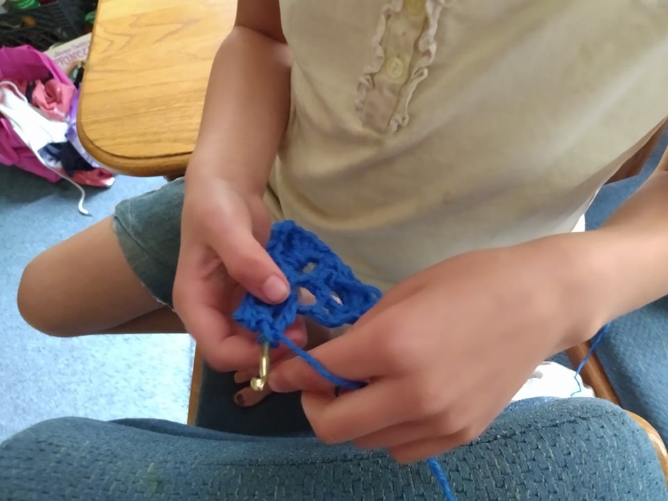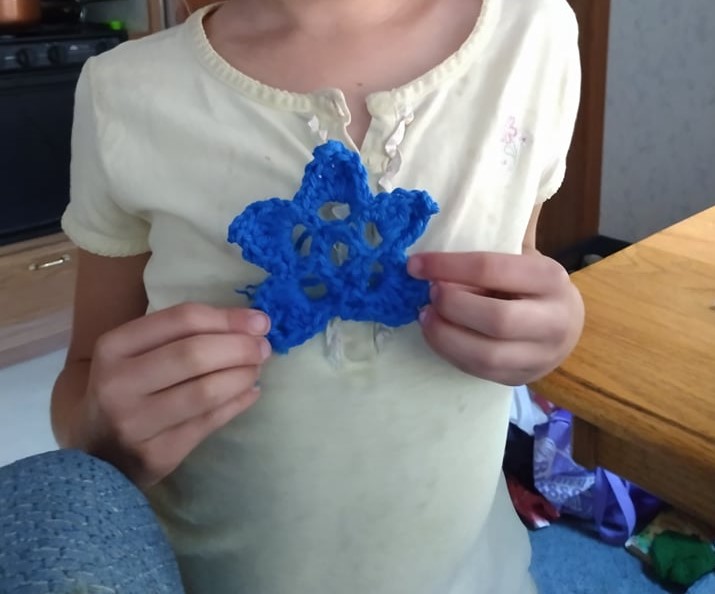 I previously released my free crochet pattern for the Christmas Star Ornaments.  During testing, one of my testers’ daughter wanted to crochet the star as well.  Below you can find pics of my friend’s daughter crocheting her Christmas Star Ornament.