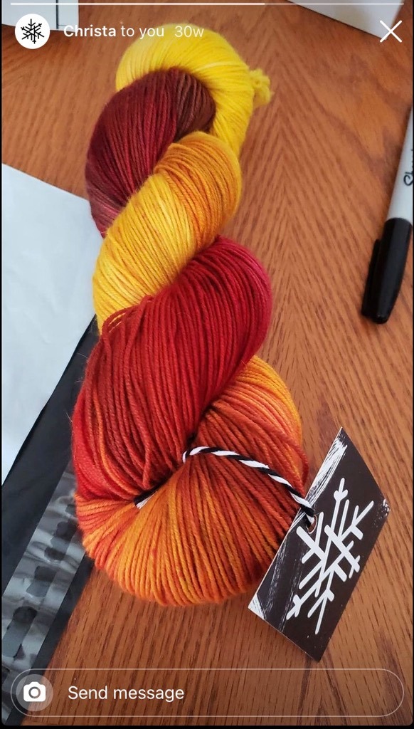 I used 436 yards of 100% SW Merino Fingering Weight Yarn in Red Dragonfly