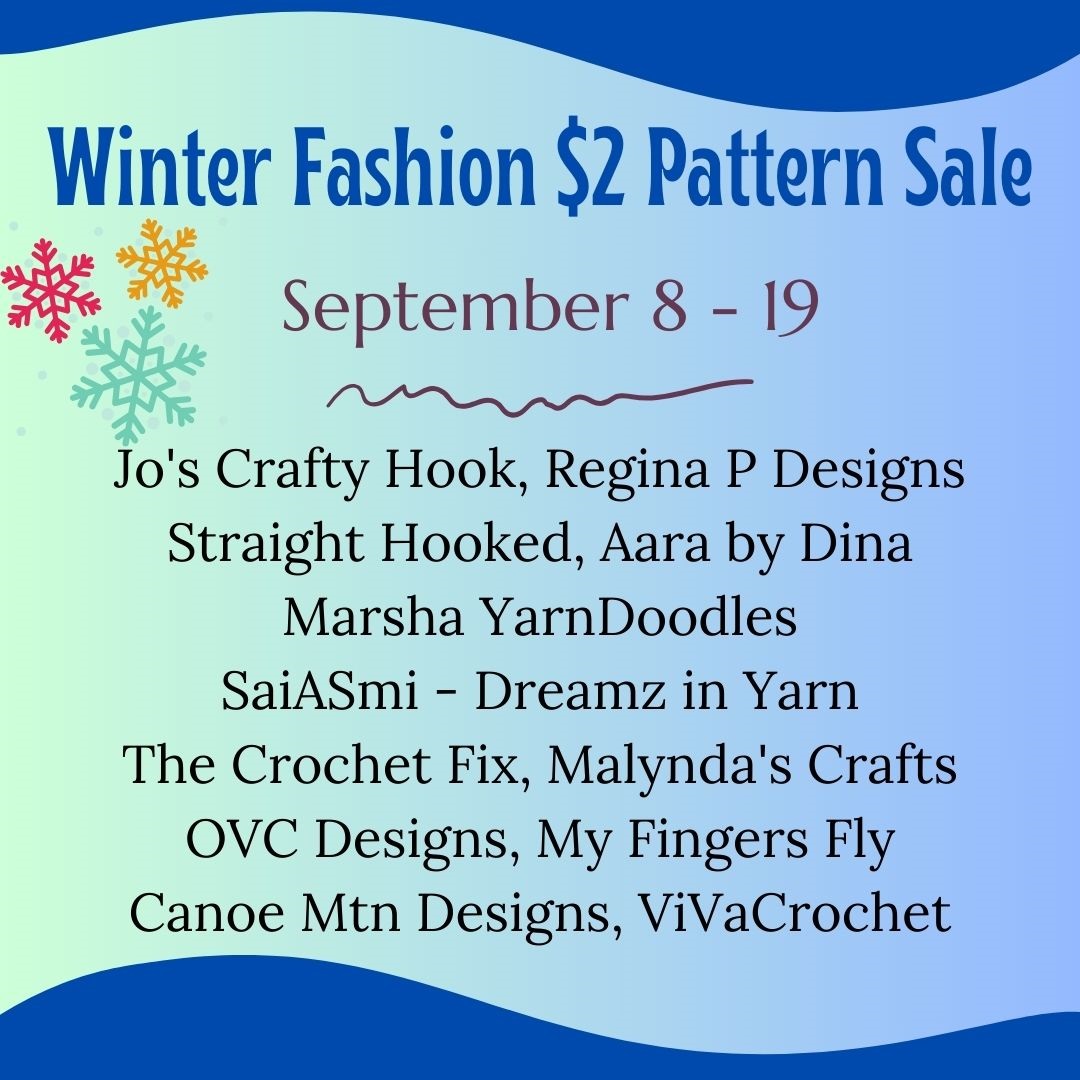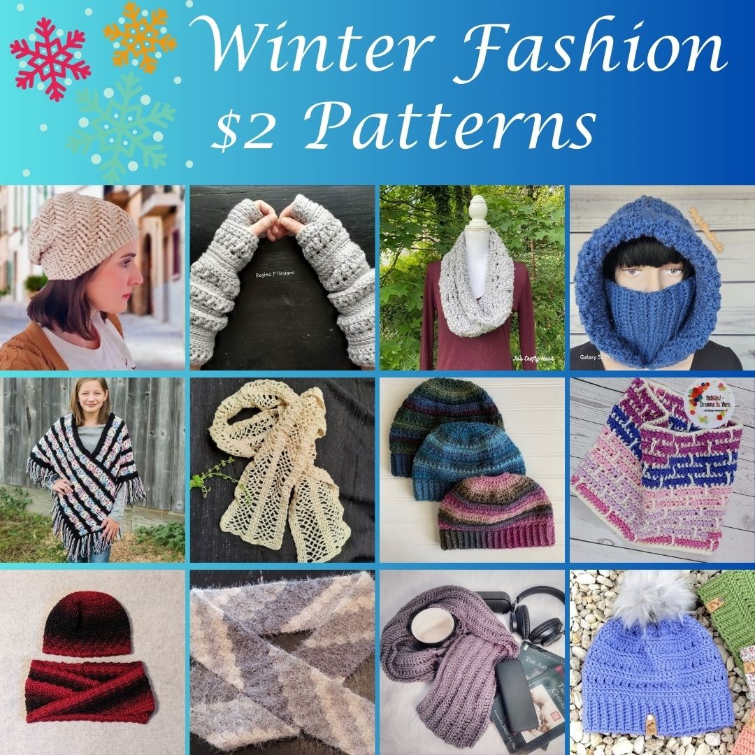 The Winter Fashion $2 Pattern Sale contains 12 crochet designs on sale for $2 each from September 8-19. 2024. Keep yourself and others warm this Winter season and add these warm and cozy crochet designs you can crochet and add to anyone’s Winter Wardrobe.
